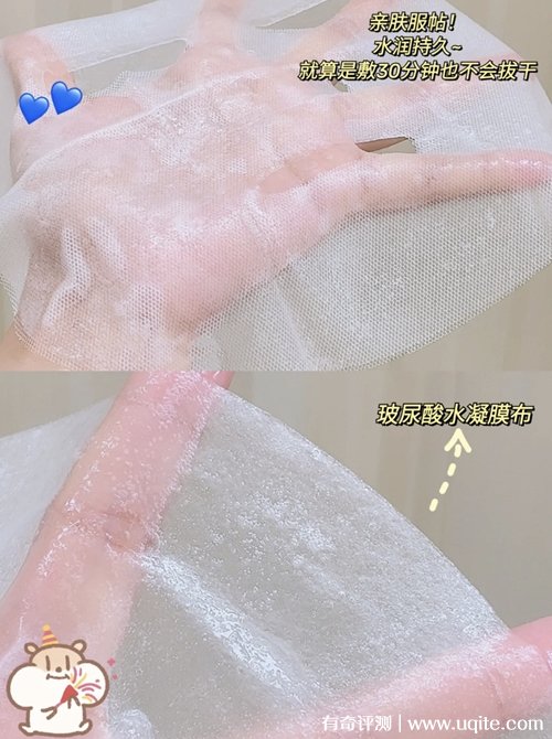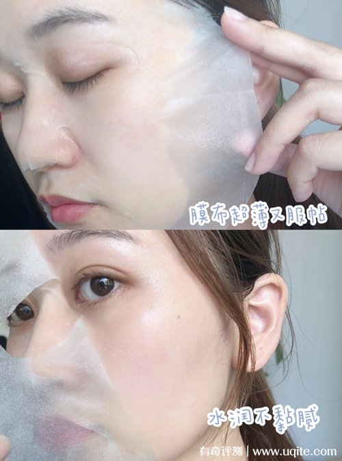它里面精華含量很多,膜布拿出來(lái)后還有多的,精華質(zhì)地是稠的,但不算粘膩,吸收感明顯,能感覺(jué)到膜布在臉上越來(lái)越干。