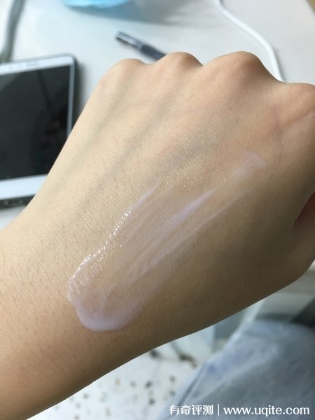 它成膜后也沒有油感,不搓泥,沒啥潤色效果,所以不存在假白情況,用做妝前打底是合適的,本身它用完后皮膚水分也有上升的感覺。