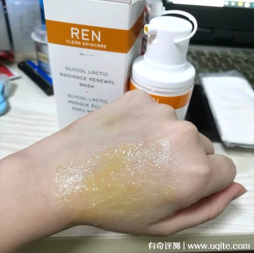 REN果酸面膜的質(zhì)地是黃色的,上手很好推開,聞起來也有一股淡淡的橘子味,我就還挺喜歡的。第一次使用本來擔心會有點不適反應,但是沒想到上臉之后基本上感覺不到什么刺痛感,所以溫和性就還挺不錯的。