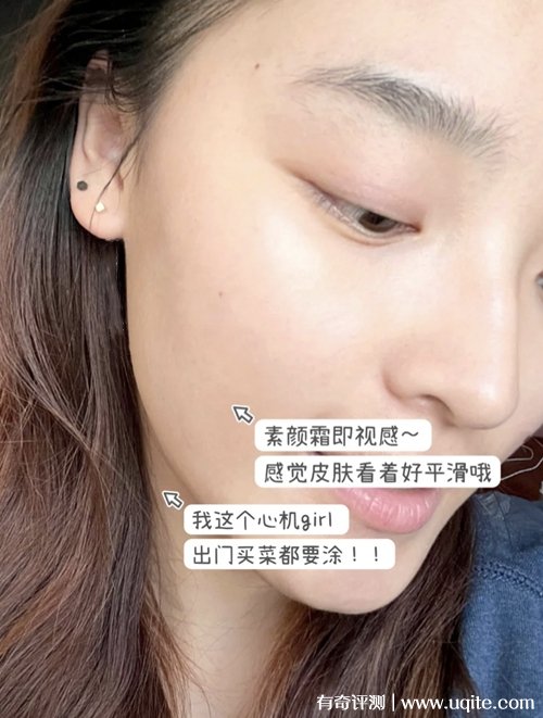 秀膚生防曬霜用完之后稍微有點(diǎn)潤(rùn)色的效果,但不會(huì)假白,挺自然的,跟原本的膚色融合的很好,涂完之后臉上的瑕疵都被淺淺的遮蓋了一層,整體看著很有光澤感,皮膚水潤(rùn)透亮了很多。
