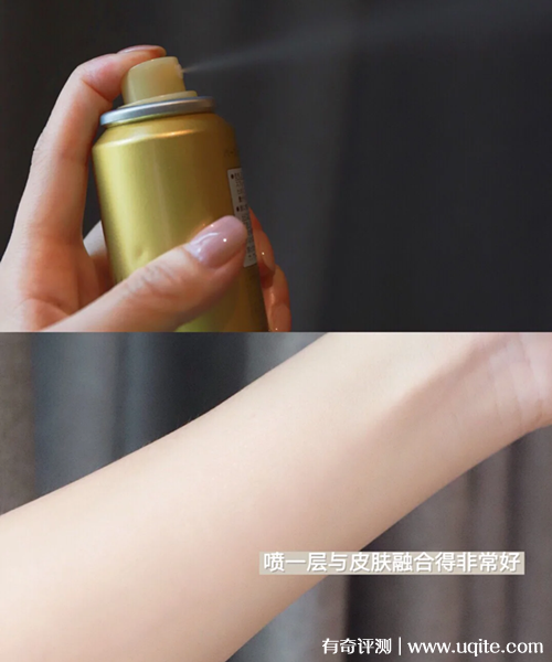 而且就算是近距離噴在肌膚上,也能清楚的看到它的質(zhì)地是很水潤(rùn)的乳液狀,上手一推也很好抹開(kāi),成膜速度快,不會(huì)有粘黏感。這款安熱沙防曬噴霧是可以上臉使用的,并且它還有一定的遮瑕提亮效果,像我膚色就不太均勻,平時(shí)用了這款防曬噴霧之后就會(huì)好很多。