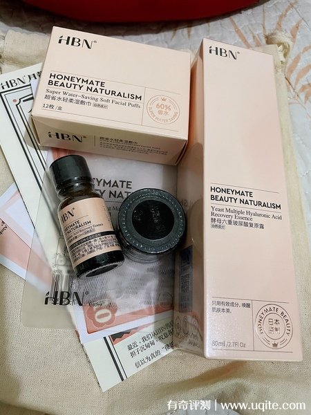 我是外油內(nèi)干型皮膚,每年一換季,臉上就容易長小疙瘩,泛紅,一搞好久好不了,以前以為就是單純過敏,后來看到博主科普,說是皮脂膜受損,需要多用修護型產(chǎn)品。HBN這個牌子我以前用過他們家發(fā)光水,還不錯,對它也挺有好感的,搜索的時候看到這款復原露,就入了。到手的時候還送了些贈品,挺劃算的。