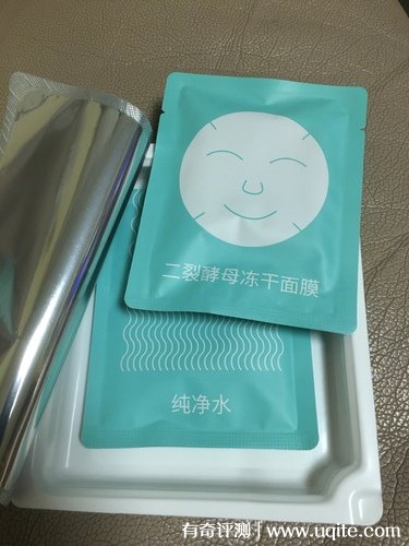 這款黑牌二裂酵母凍干面膜的包裝就還挺特別的,有點(diǎn)像禮盒的感覺,而且每一片面膜才開之后,里面還分有純凈水和凍干面膜兩種產(chǎn)品,看著就挺高級(jí)的。