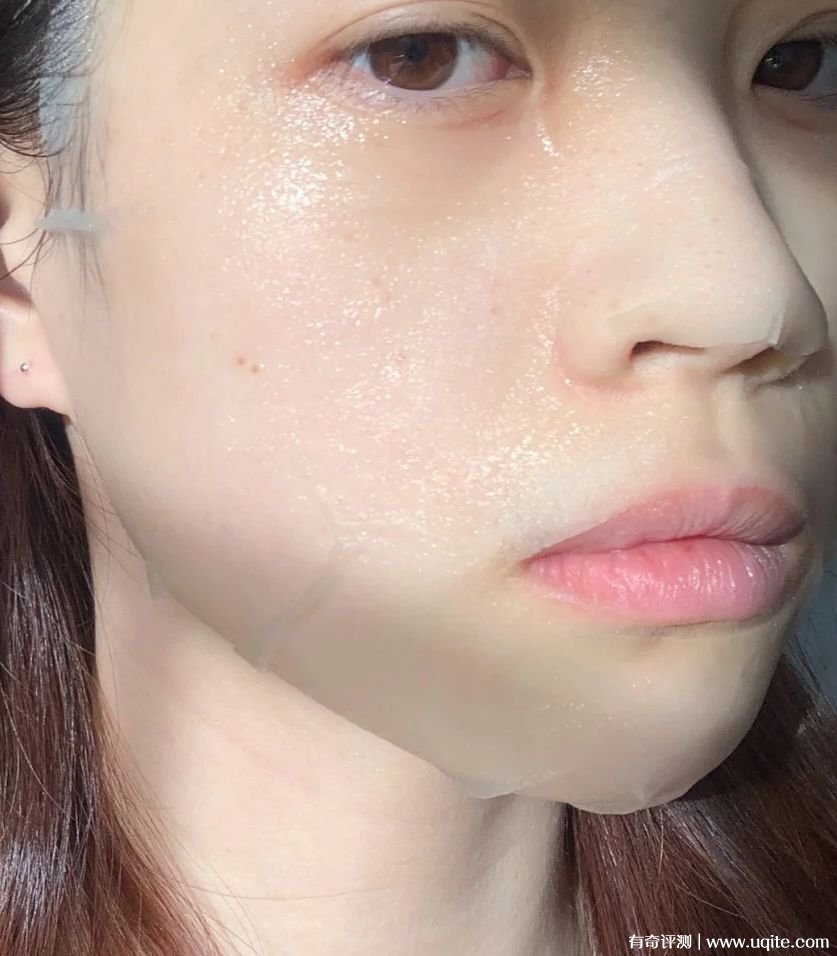 精華含量很多,拿出膜布后還有不少,可以用來抹脖子和腿。質(zhì)地是比較清爽的類型,不粘膩,敷在臉上吸收感明顯,能感覺膜布越來越干。