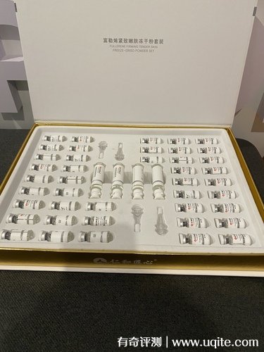 這款藥都仁和凍干粉是禮盒裝的,它一盒里面一共有46件單品,分別為凍干粉21支,溶媒液21支和精華液原液4支,看著就還挺不錯(cuò)的。