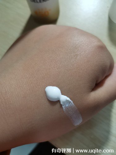 這款蝶蓮娜防曬霜是按壓泵的設(shè)計(jì),所以平時(shí)用起來(lái)就還蠻方便的。蝶蓮娜的這款防曬霜是乳白色的質(zhì)地,上手很好推開(kāi),滋潤(rùn)度也很高,沒(méi)有油膩感。