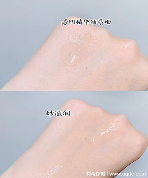 使用時,要先將膠囊凸出來的那個小手柄剪掉,然后就可以了。這款楓緹紅石榴精華的質地是透明的,上手涂抹有一定的流動性,而且精華液的質感很輕盈,抹開以后吸收很快,沒有油膩粘黏感,就還挺不錯的。