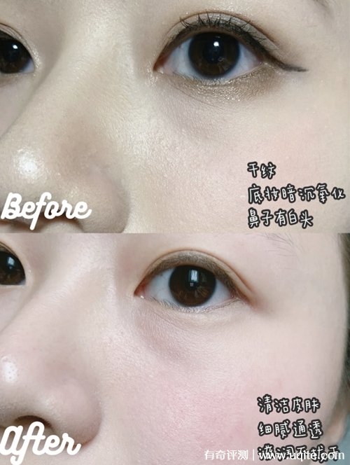 像有時候周末出門玩,我還會畫眼妝,睫毛膏眼影之類的,卸妝的時候,就用化妝棉沾了卸妝水之后敷一會就好,卸大濃妝和一些防水的彩妝也沒什么壓力,卸完后臉上干干凈凈的,化妝棉都是卸下來的臟東西。
