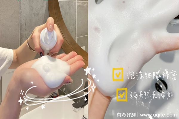 這款顏百科洗面奶是慕斯泡沫的質(zhì)地,所以平時用起來很方便,不能再額外起泡了。而且這款顏百科洗面奶上臉使用很溫和,沒有任何刺痛感和不適反應,這點就還挺不錯的。