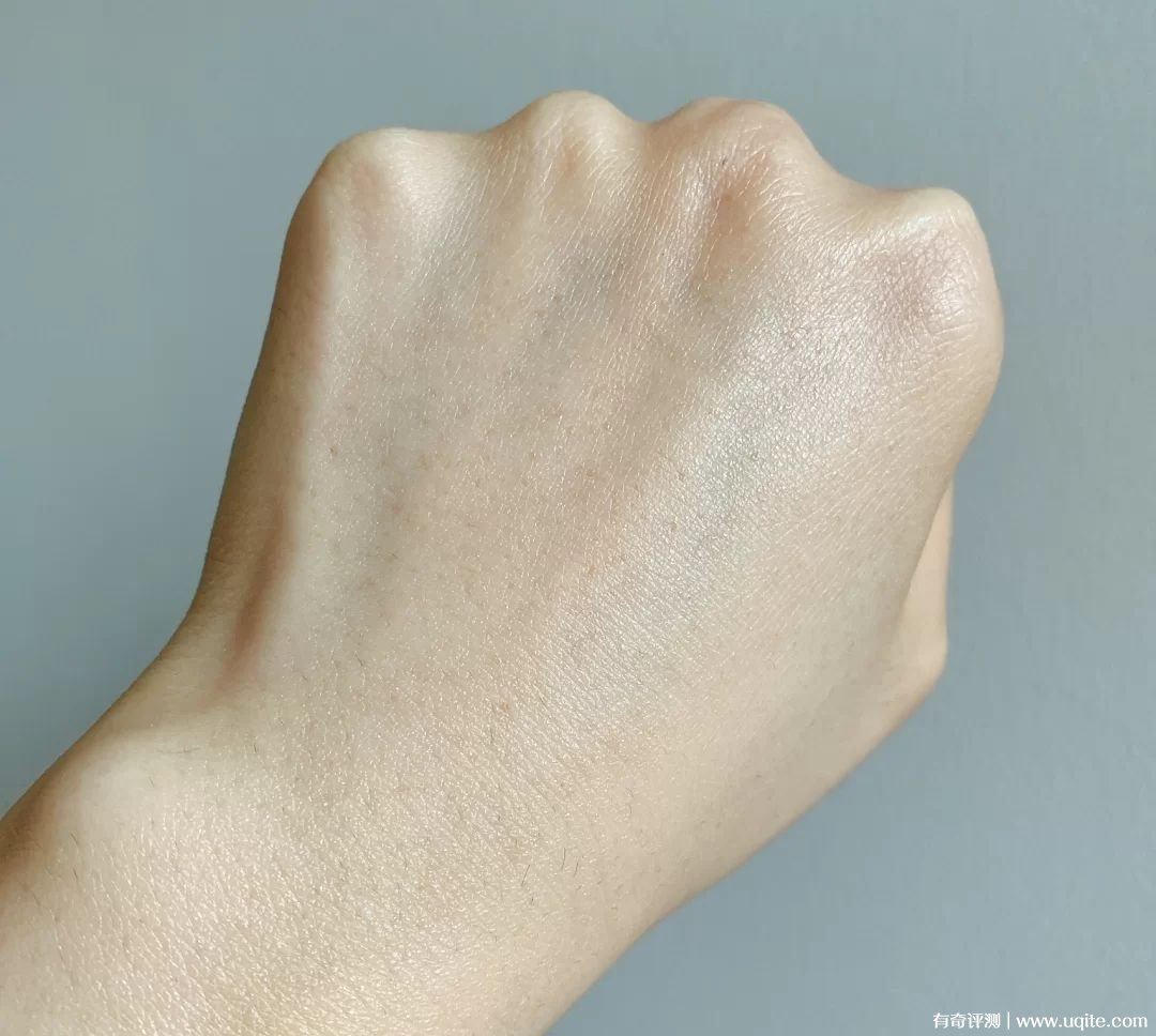 它有一點點提亮膚色的效果,但不假白,挺自然的,能把皮膚顯得稍微通透有氣色些,我還挺喜歡的。后續(xù)也不搓泥啥的,做為妝前打底也是合適的。