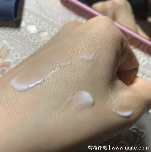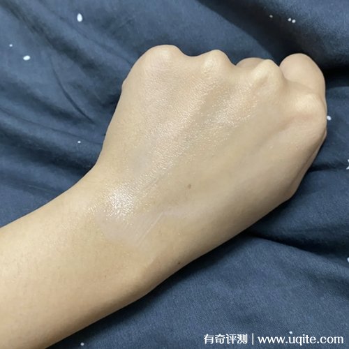 這款防曬霜是一款物理化學(xué)二合一的防曬,所以涂完之后沒(méi)有什么均勻增白的效果,不會(huì)假白,整體還是蠻自然的,用完后膚色看著也還蠻有光澤感的。