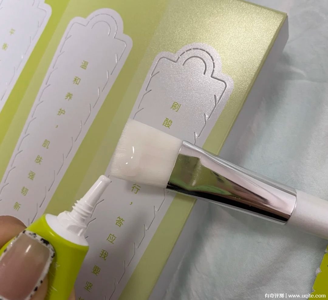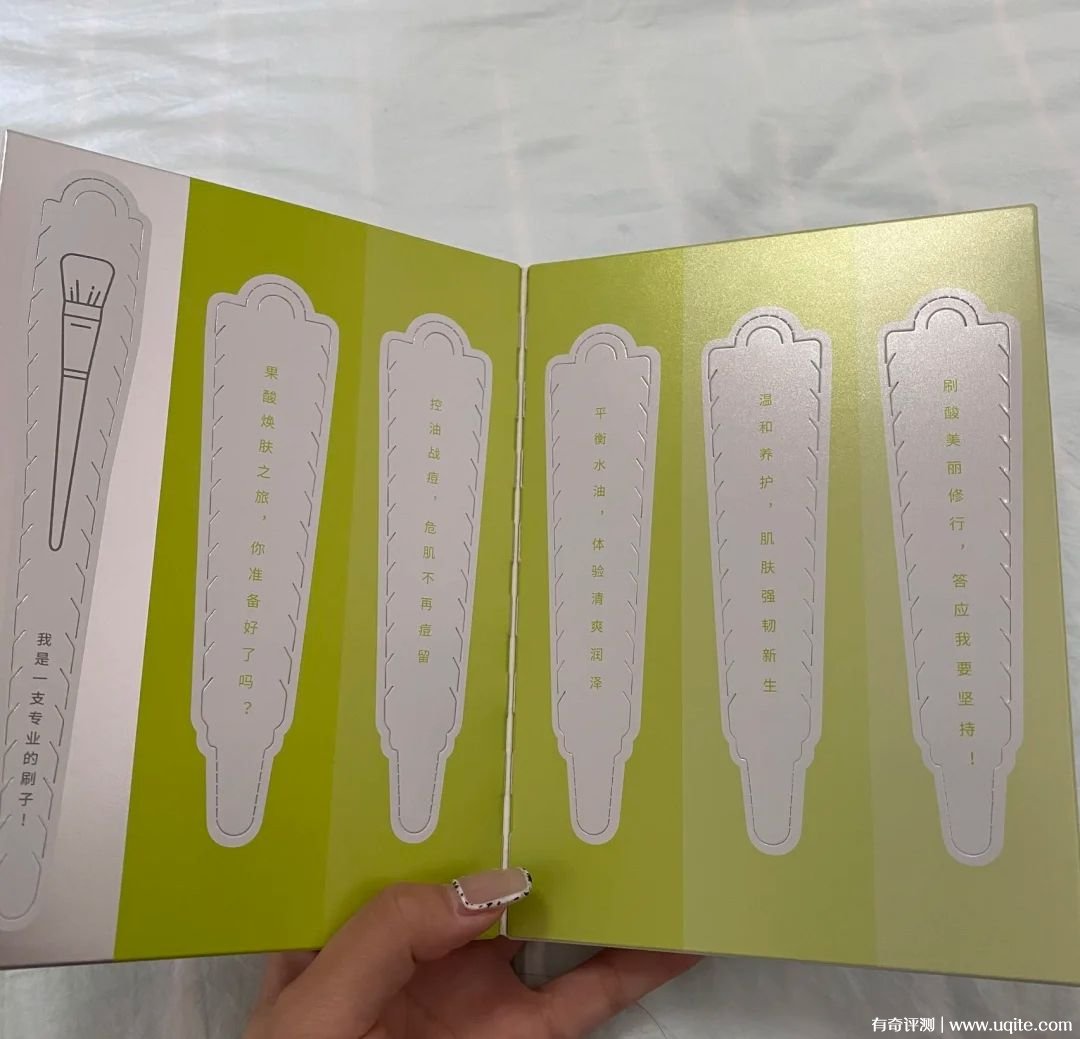 潤(rùn)百顏果酸面膜設(shè)計(jì)很有特點(diǎn),每支打開都有使用建議。還送了個(gè)刷子,用著蠻方便的。面膜本身沒有明顯氣味,質(zhì)地是透明的比較清爽的感覺,涼涼的,耐受建立之后,用著還蠻舒服的。