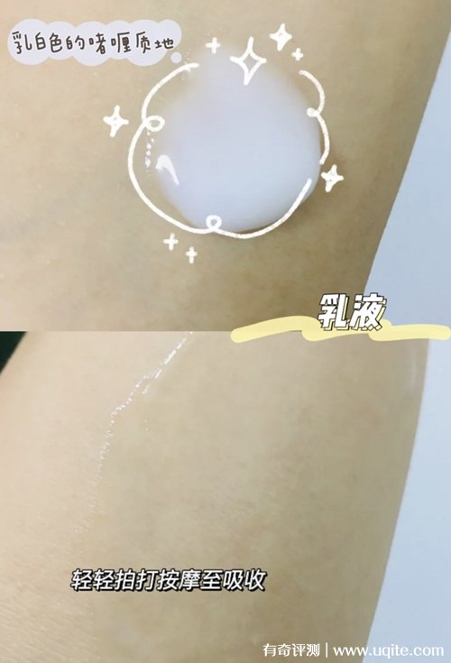 乳液也是偏流動(dòng)性的質(zhì)地,很輕薄,上臉很好推開(kāi),使用之后沒(méi)有油膩感和粘黏感,拍打吸收之后,皮膚看著還蠻透亮的,保濕效果也不錯(cuò),我有時(shí)候懶的護(hù)膚就直接涂它了,一整晚下來(lái),皮膚也不會(huì)覺(jué)得干燥,隔天起來(lái)摸著也很柔軟,沒(méi)啥粗糙感。