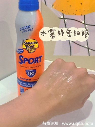 香蕉船防曬噴霧蠻細膩的,質地是透明的,所以不會存在假白的情況,而且它的油感也不重,它噴出來的噴霧還蠻聚集的,噴完之后需要自己多花點時間抹抹。抹勻后成膜速度蠻快的,平時出門前幾分鐘用就行,成膜之后油感慢慢消失,還是蠻清爽的。