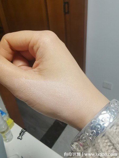 實物質(zhì)地我很喜歡,潤潤的,但不厚重,特別好推開,上臉服帖度高,我是混干皮,用著一天下來都不浮粉,保濕力不錯。