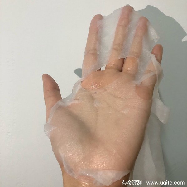 GONIM面膜使用過程中,能感覺到膜布越來越干,不過敷完也還是能擠出很多殘留精華的。