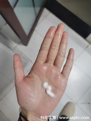 洗面奶是支裝的,分量還算不錯,而且在使用時,它的味道很好味,有一股很淡的牛奶香味。葳蘭氏洗面奶的質地是乳白色的,不干就還挺水潤的。