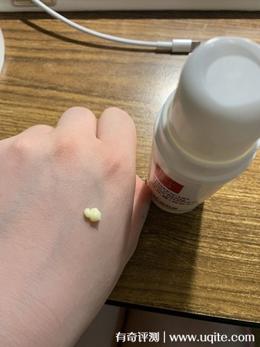 軍獻(xiàn)益膚霜的膏體是淡黃色的,看著有點(diǎn)厚重,但其實上臉還蠻滋潤的,沒什么油膩厚重感,它的吸收速度也還可以,上臉拍拍就吸收了,用完后清清爽爽的,皮膚水分感也有上升一些。
