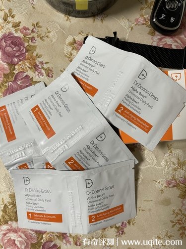 DrDennisGross果酸煥膚棉片到手之后包裝還蠻不錯的,它是送了一些贈品小樣,它的包裝我還蠻喜歡的,都是獨立的包裝,用著也還蠻干凈衛(wèi)生的。