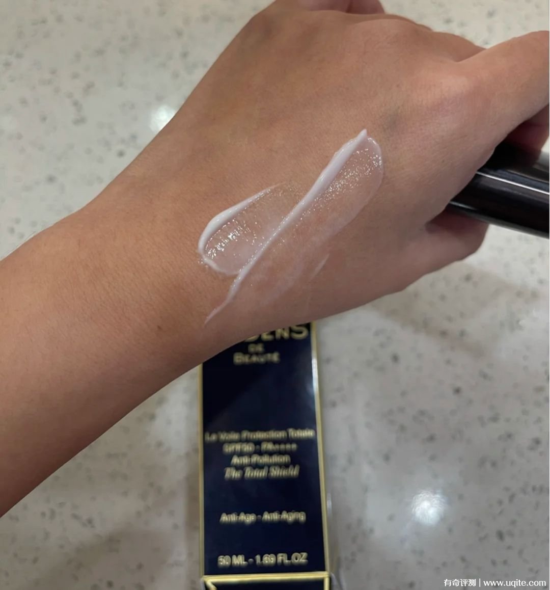 它吸收成膜速度也蠻快的,大概一分鐘左右,就感覺已經(jīng)吸收進(jìn)去了,出門前一會用上就行。它是不帶增白效果的類型,所以沒有假白問題,后續(xù)也不搓泥。