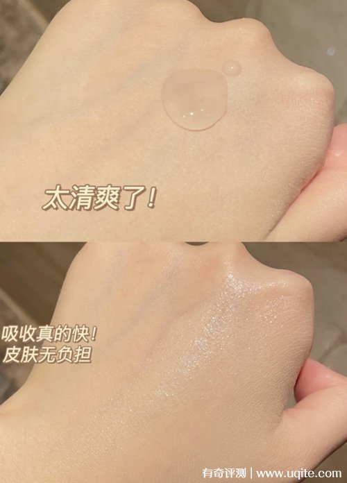 PMPM白松露精華乳的質(zhì)地也是清爽的,很水潤,流動性也不錯,上臉一抹開就化水了,吸收也不錯,使用之后沒有油膩感和粘黏感,皮膚看著還蠻透亮的,它的保濕效果也不錯,用完后皮膚軟軟的。