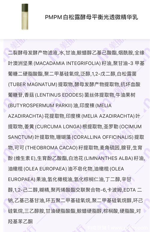 PMPM是一個新起的國貨品牌,發(fā)展勢頭很猛,該品牌的創(chuàng)始人是原Olay中國區(qū)的品牌總監(jiān),品牌理念是旨在探索世界,用不同的地域神奇的自然成分加上有效的科研成分,再輔以國際先進技術(shù)打造有生命力的中國原創(chuàng)護膚品牌。其中,PMPM白松露酵母精華水乳就是一款熱銷產(chǎn)品,下面就來看看這款PMPM白松露酵母精華水乳怎么樣吧。