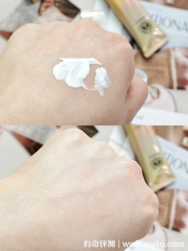 澳贊防曬霜增白效果還蠻明顯的,但不假,抹勻成膜后是比較通透的類型,暗沉全都被遮住了,瑕疵毛孔也有隱形一些,整體還不錯(cuò)。
