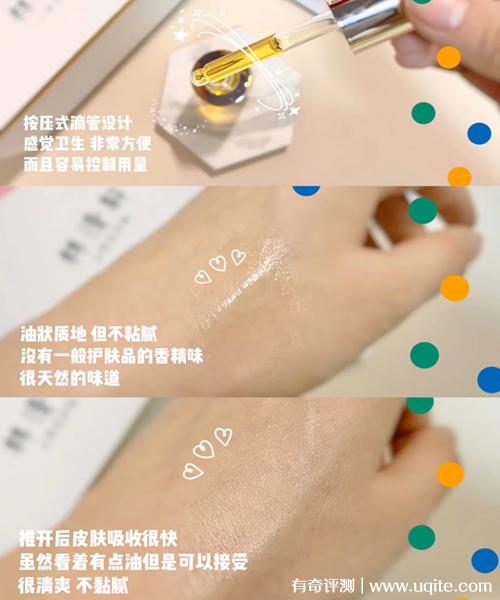 使用時(shí),這款林清軒精華油是滴管式的設(shè)計(jì),所以就還挺方便衛(wèi)生的。而且精華油的質(zhì)地很輕盈,滴在手上流動(dòng)性就很強(qiáng),不會(huì)有很明顯的油膩感(本人混油皮),吸收之后,有很不錯(cuò)的補(bǔ)水亮膚效果。