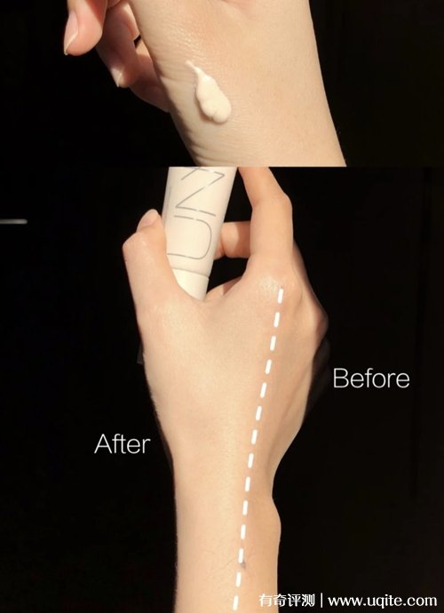 unny妝前乳的增白效果還比較好,上臉不會(huì)顯得假白,再加上我本身臉上膚色除了暗沉部分,整體還是偏白的,所以涂上去之后還蠻通透自然的,用完膚色均勻好多,暗沉被遮住了,泛紅和小疙瘩也被淡化了不少,同時(shí)毛孔隱形了些,我平時(shí)出門就涂它再加口紅,整個(gè)氣色就好了很多。