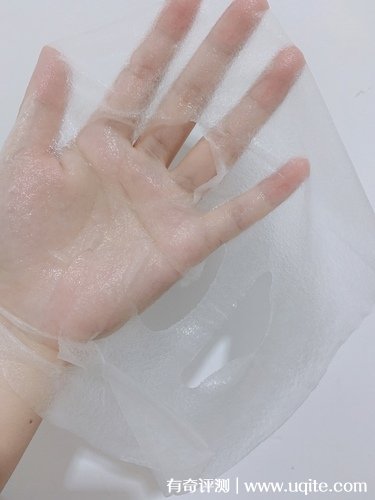 面膜拆開以后,它一共有兩層,厚的那一層主要是起支撐作用,而薄的那層才是上臉?lè)筚N的面膜。面膜的質(zhì)地就挺輕薄的,上臉使用會(huì)有一種隱形的效果,而且這款卡絲面膜成分溫和性很高,敷上以后,沒(méi)有刺痛過(guò)敏的現(xiàn)象,所以就還挺安全的。