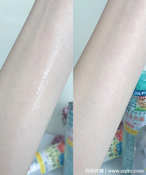 使用時(shí),這款愛伽絲防曬噴霧的霧化成分很細(xì)膩,噴在肌膚上有一種冰冰涼涼的感覺,而且它沒有顏色,平常噴完之后,也不需要再用手去涂抹了,就還挺方便的。愛伽絲防曬噴霧的成膜速度很快,用完之后,肌膚沒有任何油膩粘黏情況,就還挺清爽的。