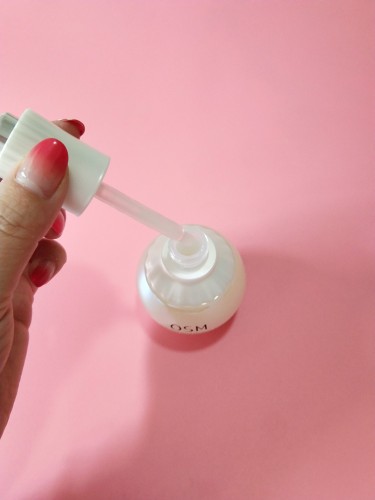 這是歐詩(shī)漫小白燈美白精華滴在手背上的樣子,淡淡的乳液狀,吸收蠻好。用起來(lái)沒(méi)有刺激感,非常溫和、清爽,還有一股淡淡的清香味,這個(gè)我很喜歡。