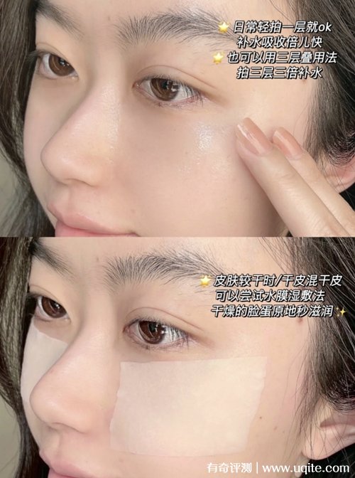 還可以當做爽膚水來濕敷,我一般都會敷個五分鐘左右,敷完之后就感覺皮膚嫩了好多,摸著手感也比較好,很q彈,而且它的保濕效果挺不錯的,敷完之后之后就算長時間不涂其他護膚品,也不會覺得臉干。