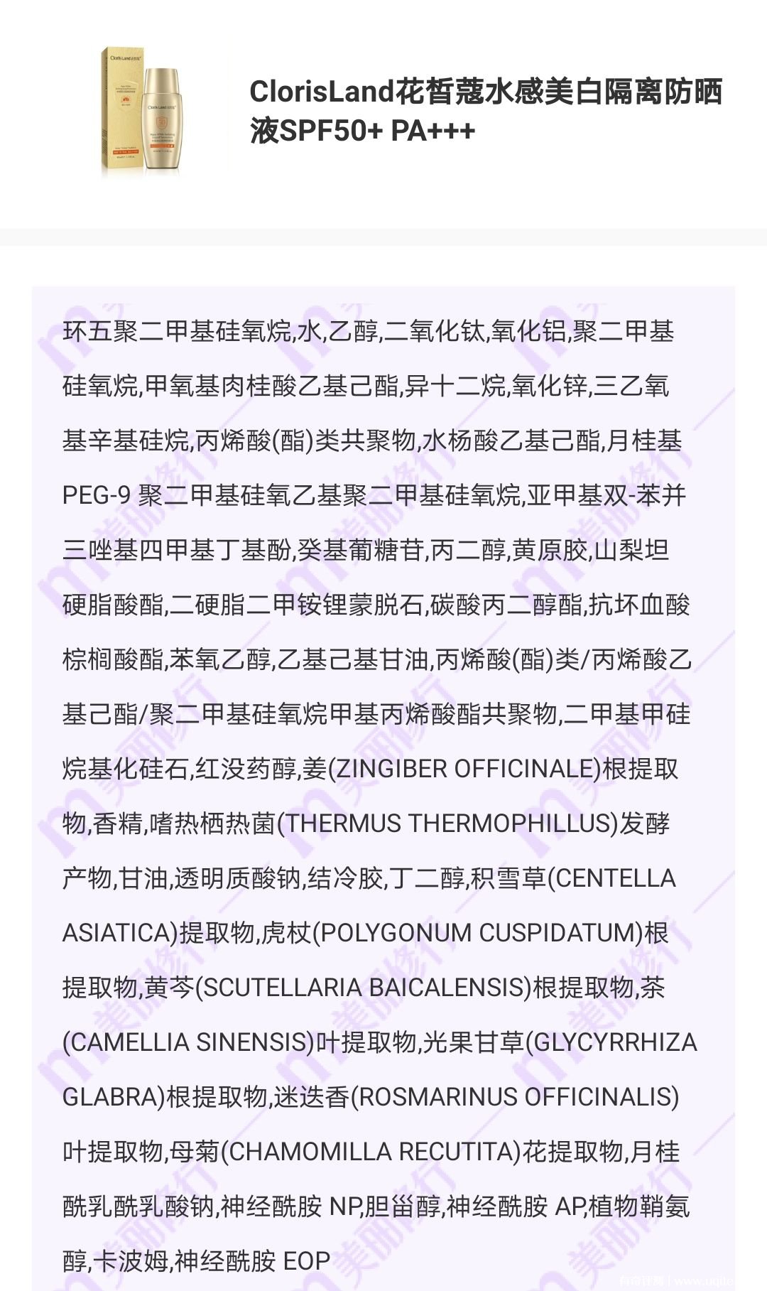 花皙蔻(CLorisLand)是一個源自澳洲的天然有機護膚品牌,由著名生物學(xué)家Greg Nilhan打造,品牌崇尚“純凈、有效、關(guān)愛”的理念,將植物作為主要原料,采用先進提純技術(shù),致力于打造天然溫和的高品質(zhì)護膚產(chǎn)品。其中,小金盾防曬霜就是一款熱銷產(chǎn)品,屬于物化結(jié)合性質(zhì)防曬(孕婦慎用,孕婦應(yīng)選擇純物理防曬產(chǎn)品),同時含多種保濕、抗衰成分。下面一起來具體看看花皙蔻防曬霜怎么樣。