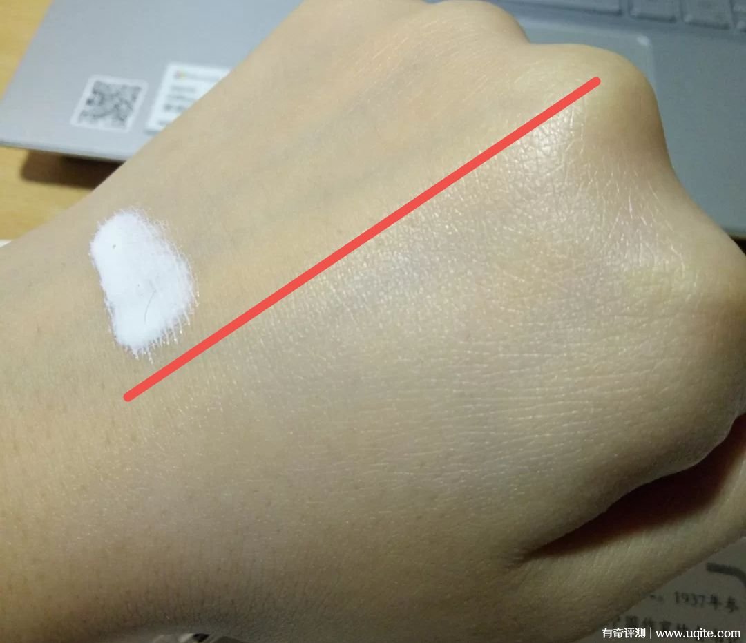 它是帶一點潤色效果的,不算明顯,稍微能均勻提亮點膚色,不會假白,我還挺喜歡的。后續(xù)不搓泥不流白汗。