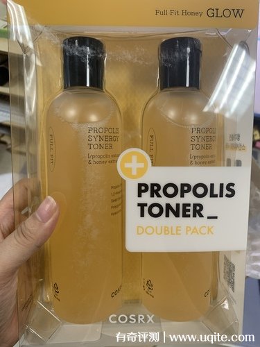 cosrx蜂膠爽膚水到手是一個(gè)禮盒裝,它里面一共有兩瓶,這個(gè)分量還是蠻足的,打開之后它的味道聞著不錯(cuò),淡淡的蜂蜜香,我也在網(wǎng)上查了一下它的成分,沒有添加什么香精和酒精,所以用著很溫和。