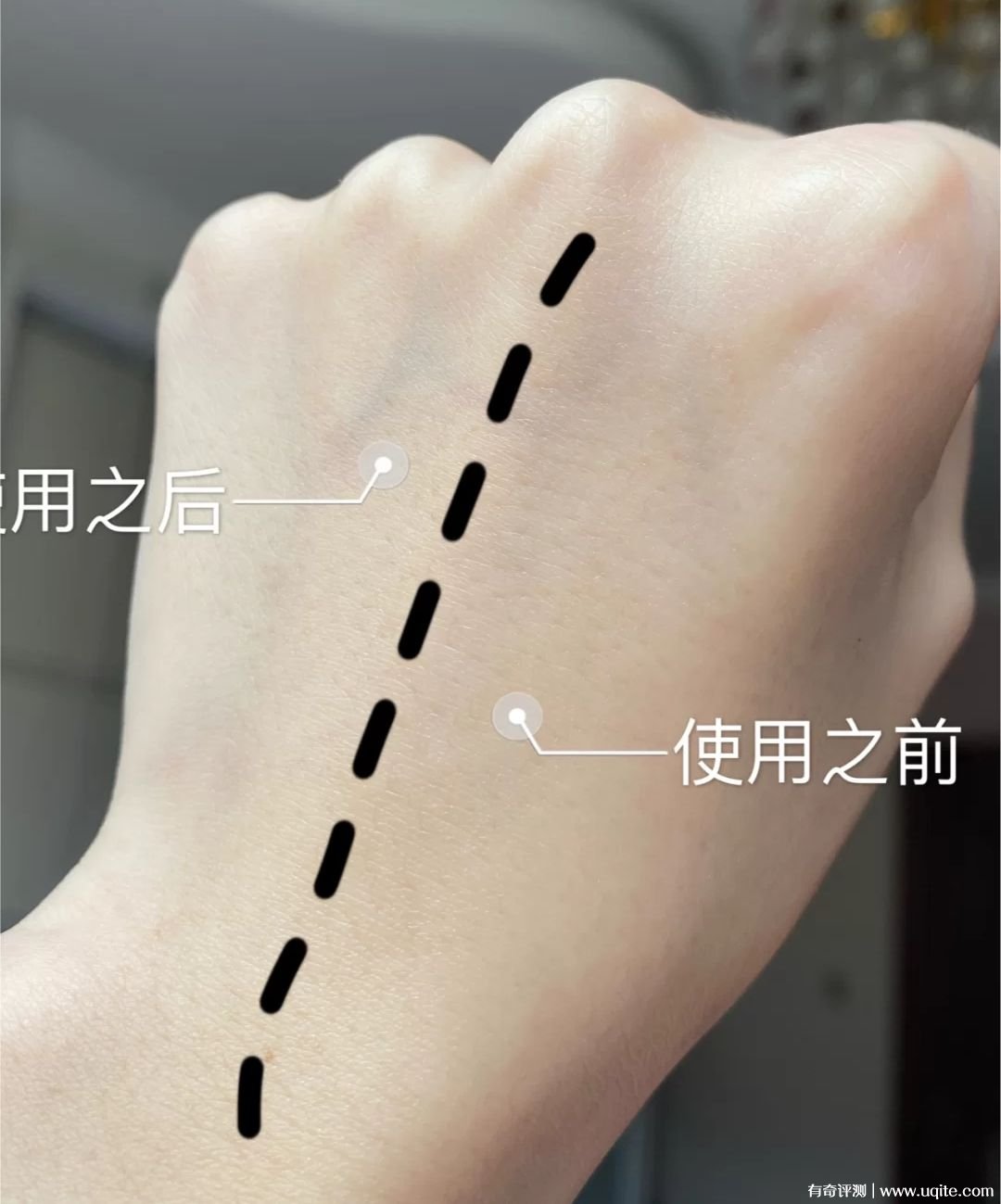 露華濃玫瑰鉆光妝前露用了之后,皮膚會(huì)有打了薄薄高光的感覺(手我沒對(duì)著陽光,沒拍出來),顯得皮膚會(huì)稍微透亮些,后續(xù)也會(huì)讓粉底有透亮通透點(diǎn)的感覺。隱形毛孔效果還不錯(cuò),要是皮膚好且白的姐妹,感覺直接涂它就可以出門了。