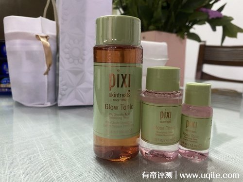 產(chǎn)品到手后感覺還挺不錯的,而且店家還贈送了一些試用品,看著就還挺劃算。這款pixi發(fā)光水是棕紅色的,流動性很強,上手使用有很不錯的流動性,但是味道不刺鼻,就還挺能接受的。
