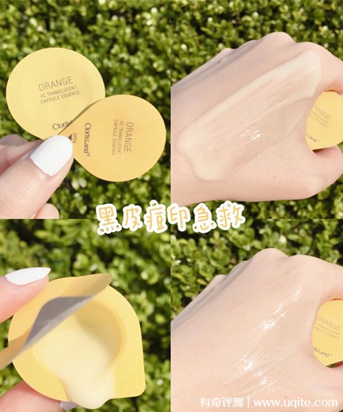 黃色的這款精華液也是奶黃色的質(zhì)地,上手不油膩,補(bǔ)水效果也很高,但是它對祛痘、白皙肌膚效果很明顯,因?yàn)?,前幾天上火長痘,我就使用了兩粒,臉上的痘痘很快就干癟消減了。