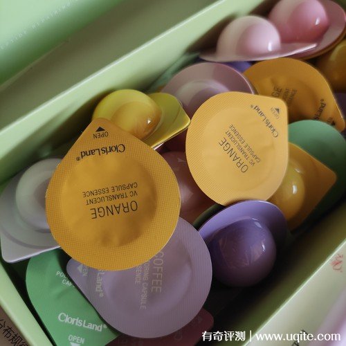 花皙蔻的這款膠囊精華一共有四種類型可選,分別為熬夜精華(紫色款)、紅敏精華(綠色款)、補(bǔ)水精華(粉色款)和黃皮精華(黃色款)。我則是將這四種各入手了一盒,感覺都還挺不錯(cuò)的。