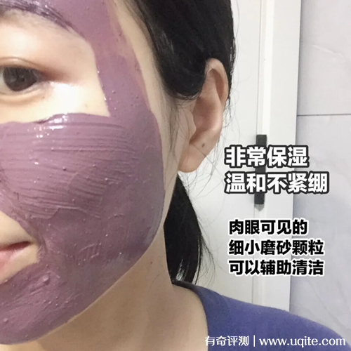 這款春雨茄子泥膜是紫色的泥狀質感,上手涂抹就還挺好推開的,而且它的質地不拔干,泥膜推開以后,里面是含有一些細小磨砂顆粒的,可以起到輔助清潔的效果。