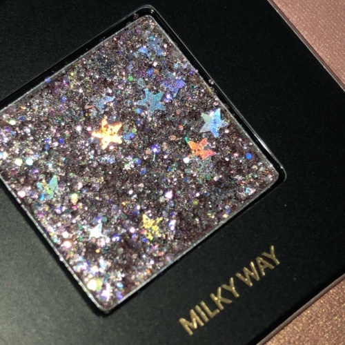 這盤眼影總共有9個顏色,9個顏色之間都是可以相互搭配的,在網(wǎng)上領券之后購買,花了75元不到,性價比算很高了,這款有7個啞光色和2個亮片色,其中一個亮片色里面有小星星,也是我最喜歡的一個亮片色,非常的有特色。