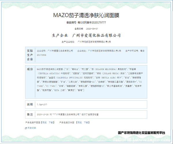 MAZO國(guó)產(chǎn)新銳護(hù)膚品牌,隸屬于廣州愛(ài)蓮化妝品有限公司旗下,雖然品牌的知名度不高,但是品牌旗下的產(chǎn)品均是獲有國(guó)家食品藥品監(jiān)督管理局備案的,是合格的正規(guī)品牌,可以放心使用。其中MAZO凈膚沁潤(rùn)茄子泥面膜,就是他們家銷(xiāo)量很高的產(chǎn)品之一,下面就來(lái)看看這款MAZO茄子面膜怎么樣。