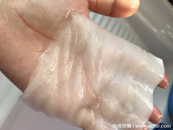 樂研夫面膜沒什么特別味道,膜布也確實(shí)挺薄的,而且超級軟,上臉舒服,服帖透氣,大小剪裁也合適。里面精華是真的多,膜布上面掛了好多,袋子里面也還有多的,脖子、手臂和腿都能抹一些。精華質(zhì)地稠稠的,但黏度還好,不會有粘膩感,吸收明顯,過程中膜布上越來越干。