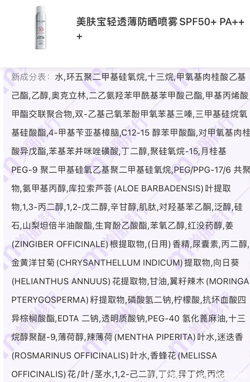 美膚寶防曬噴霧到手的時候還送了一些贈品,它的香味挺淡的,聞著不刺激,往臉上噴著也不會有刺激感,我用完之后感覺還蠻溫和的,臉上也沒有出現(xiàn)過敏的情況。而且我也在網(wǎng)上查了一下它的成分,還是蠻溫和的,沒有添加什么刺激性的成分。