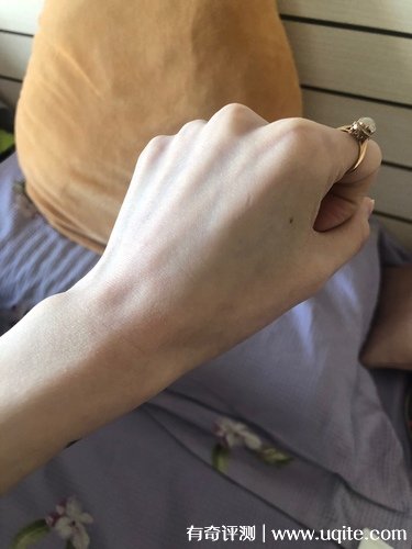我買的是粉色款,里面的防曬霜是乳霜質(zhì)地的,還帶著淡淡的玫瑰花香,隨便一推就抹開了,稍加按摩就變成了水狀,滲透超級迅速,吸收之后肌膚會很有光澤感,摸上去滑溜溜的,不還有黏膩感,猶如保濕呵護的感覺,防曬效果也很不錯。