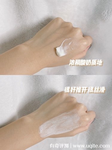 這款珂諾詩希臘酸奶面膜包裝我還挺喜歡的,而且它的面膜質(zhì)地有點像奶油冰淇淋的感覺,上手涂抹就還挺好推開的,完全沒有厚重感和拔干的現(xiàn)象,水潤感很強。
