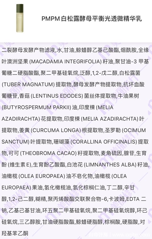 我最近可能是因?yàn)榘疽箵Q季的原因,皮膚狀態(tài)還蠻不好的,臉上毛孔粗大、皮膚暗沉松垮,我就想試試抗初老的產(chǎn)品,在網(wǎng)上看產(chǎn)品推薦的時(shí)候就看到了這款PMPM白松露水乳,我它的評(píng)價(jià)還蠻不錯(cuò)的,就想試試。