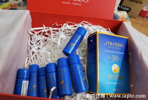 資生堂藍胖子防曬霜到手之后還送了很多贈品,感覺還蠻劃算的,防曬霜到手之后包裝還蠻不錯的,一瓶分量挺足的,打開之后它的味道聞著也不刺激,用著也還蠻溫和的,我也在網(wǎng)上查了一下它的成分,沒有添加什么刺激性的成分。