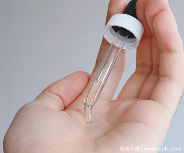 這款歐邦琪VC精華在使用的時候就還挺方便的,它是滴管式的設(shè)計,平時用多少就很好控制使用量,而且它的質(zhì)地很輕盈,是透明的水狀質(zhì)感,滴在手上流動性就挺強的。